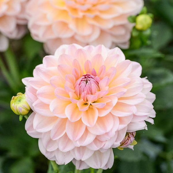Un classique parmi les dahlias ! Un adorable petit pompon rose très clair. Les centres passent au blanc et rappellent une colline enneigée. Un must si vous cultivez des fleurs pour la floristerie de mariage !