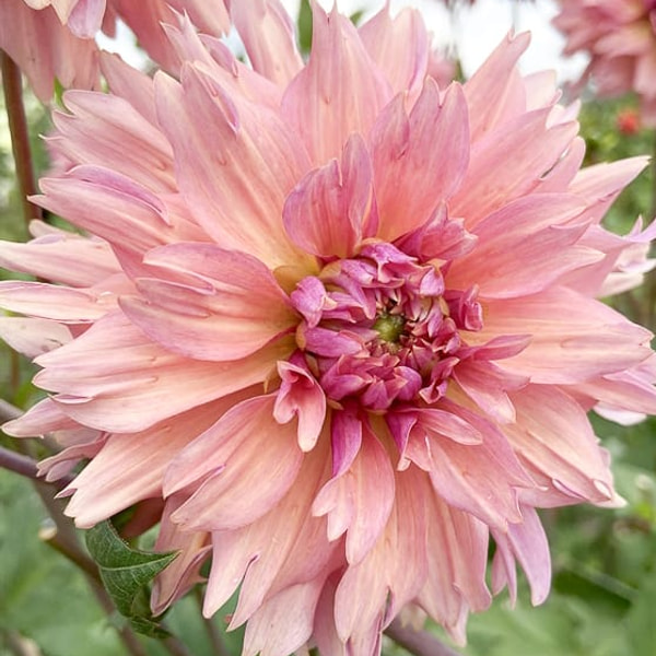La liste des 10 dahlias les plus populaires de notre ferme commence par ce dahlia. Une couleur que toutes les mariées adorent. Un rose corail avec des reflets virant parfois à l'abricot clair jusqu'au saumon clair. Un incontournable pour tout jardin de dahlias.