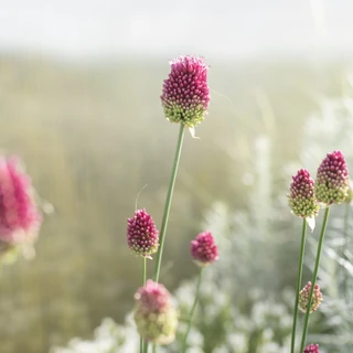 La sanguisorbe est une plante de prairie indigène qui pousse naturellement dans les prairies humides. Au milieu de l'été, des tiges ramifiées portant de petites têtes florales rouge foncé émergent du feuillage penné. Dans les parterres comme dans les bouquets, elles créent des accents de forme et de couleur inhabituels. La grande pimprenelle (Sanguisorba officinalis) est une plante vitale pour l'Azuré des paluds. Au jardin, elle convient aux plantations de style naturel avec des graminées et d'autres vivaces. Elle apporte légèreté et côté aérien aux bouquets. Elle tient 7 à 10 jours en vase.
