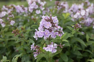 Le Phlox est une vivace indigène d'Amérique du Nord. Il a rapidement atteint une grande popularité dans les jardins européens et a été systématiquement sélectionné depuis le XIXe siècle. C'est une vivace classique pour la coupe en bouquets, où elle ravit par ses fleurs colorées mais aussi par son parfum délicat. Nous récoltons dès qu'environ la moitié des fleurs de l'inflorescence sont épanouies, il tient alors jusqu'à 10 jours en vase. Malgré les efforts pour créer les cultivars les plus résistants possibles, il reste vrai que le phlox réagit de manière extrêmement sensible au climat et aux conditions du sol, c'est pourquoi nous veillons soigneusement au bon choix de l'emplacement. Le cultivar Franz Schubert a des fleurs violet pastel qui pâlissent vers le bord. La couleur délicate des fleurs est particulièrement belle en combinaison avec des plantes à feuillage foncé. Il sent très bon.