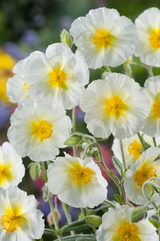 Le Phlox est une vivace indigène d'Amérique du Nord. Il a rapidement atteint une grande popularité dans les jardins européens et a été systématiquement sélectionné depuis le 19ème siècle. C'est une vivace classique pour la fleur coupée en bouquet, où, outre ses fleurs colorées, il ravit aussi par son parfum délicat. Nous récoltons dès qu'environ la moitié des fleurs de l'inflorescence sont épanouies, il tient alors jusqu'à 10 jours en vase. Malgré les efforts pour sélectionner les cultivars les plus résistants possible, il reste vrai que le phlox réagit de manière extrêmement sensible au climat et aux conditions du sol, c'est pourquoi nous veillons soigneusement au bon choix de l'emplacement. Fujiyama est une variété désormais classique et toujours populaire, sélectionnée aux USA en 1965. Les fleurs élégantes sont petites, d'un blanc pur. Elle fleurit très abondamment.