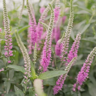 Le Veronicastrum est une vivace indigène de l'est de l'Amérique du Nord, où il pousse dans les prairies humides et les forêts claires. Ses fleurs disposées en épis ramifiés dressés sont impressionnantes. Elles attirent beaucoup les insectes et les papillons. Après la floraison, les infrutescences durables ornent la plante longtemps jusqu'en hiver. En vase, ces vivaces imposantes tiennent environ 7 jours. Pink Glow est un cultivar de jardin de la forme sauvage de Veronicastrum à fleurs rose clair. Il possède des inflorescences rose clair fermes.