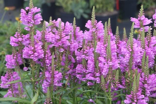 La Physostégie est une plante indigène des régions orientales de l'Amérique du Nord, où elle pousse sur les rives des rivières et dans les prairies humides. Elle forme des touffes érigées et buissonnantes qui se propagent aux alentours par des stolons. Les fleurs ont la forme d'un épi mince avec quatre rangées de fleurs tubulaires et rappellent les fleurs de Muflier. On récolte dès que les premières fleurs de l'inflorescence s'ouvrent, elles continuent ensuite à fleurir en vase. Dans un bouquet, elles accompagnent bien les Dahlias et tiennent 10 à 14 jours en vase. Les épis fanés avec les graines sont intéressants et utilisables aussi pour le séchage. Alba a des fleurs d'un blanc pur et s'étend bien.