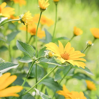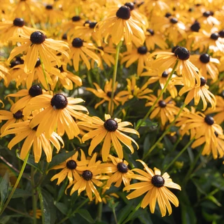 Les Rudbeckias proviennent d'Amérique du Nord ; ce sont des vivaces robustes à la floraison abondante en fin d'été et en automne. Elles conviennent aux plantations de style prairie avec de hautes herbes ainsi qu'aux jardins de campagne près des chalets. Les cônes centraux, après la maturation des graines, sont très spectaculaires et ornent les massifs de vivaces même en hiver. Pour les bouquets, récoltez dès l'éclosion. La tenue en vase est de 7 à 10 jours. On peut aussi utiliser les cônes centraux secs. Henry Eilers est une espèce naturelle nommée d'après celui qui l'a découverte. Fleurs aux formes intéressantes avec des centres bruns marqués. De là partent des pétales jaunes rayonnants enroulés en tubes étroits.