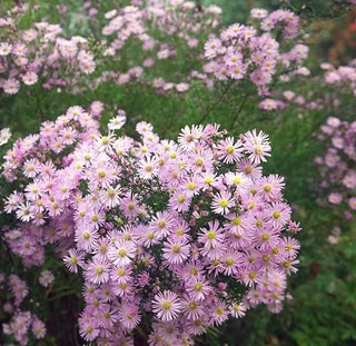 De petites feuilles fines et de longues tiges bien ramifiées portant un grand nombre de petites fleurs en forme d'étoile font de cet aster une fleur d'automne idéale pour la coupe. Dans les massifs, il sert de remplissage vaporeux et illumine le jardin après la floraison des vivaces estivales. Il sera du plus bel effet en combinaison avec des roses ou dans des plantations sauvages avec des graminées. Important pour les abeilles et les papillons comme dernier pâturage avant l'hiver. Tient 7 à 10 jours en vase. Pink Cloud fleurit avec une grande quantité de petites fleurs roses à cœur jaune.