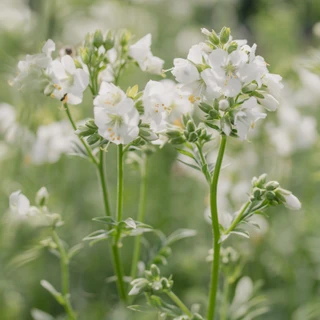 La Polémoine est une vivace sauvage indigène cultivée dans les jardins comme plante ornementale depuis le XVIe siècle. Ses feuilles individuelles sont disposées de manière remarquablement régulière, d'où son nom populaire d'Échelle de Jacob. Nous récoltons dès qu'un tiers des fleurs est ouvert. Tenue en vase de 7 à 10 jours. Le cultivar White Pearl a des fleurs blanc pur avec des étamines jaunes.
