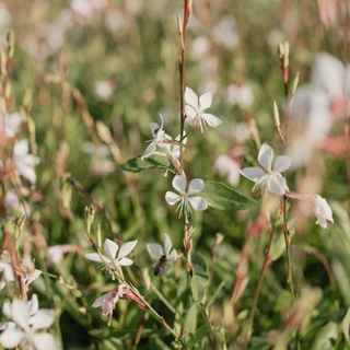 Le Gaura est une vivace en touffe originaire du Texas et de la Louisiane. Chez nous, elle se comporte plutôt comme une vivace à courte durée de vie. Elle se combine magnifiquement avec les graminées et apporte légèreté et caractère aérien aux massifs. C'est un excellent pâturage pour les insectes. De petites fleurs ressemblant à de petits papillons s'épanouissent inlassablement de juin jusqu'aux premières gelées. Nous les récoltons pour les bouquets dès que les deux ou trois premières fleurs s'ouvrent sur la tige. 'Summer Breeze' a une abondante floraison blanche et rose. Elle est robuste et résistante.