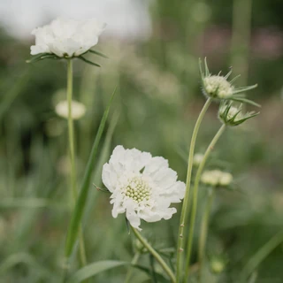 Cette scabieuse vivace pousse à l'état sauvage dans les prairies de montagne et sur les pentes rocheuses du Caucase, au nord de l'Iran et en Turquie. Au jardin, on la cultive pour ses charmantes grandes fleurs en forme de coupe. Elle a des tiges fermes et longues, ce qui en fait une vivace parfaite pour la coupe. On la récolte idéalement tant que les fleurons centraux sont fermement clos, elle tient alors jusqu'à 10 jours en vase. Les inflorescences fanées sont également très utiles et peuvent être séchées. Fama White a des fleurs d'un blanc pur.