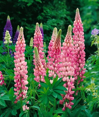 Les lupins sont remarquables par leurs fleurs inimitables et leurs feuilles composées décoratives. Naturellement, ce sont plutôt des vivaces à vie brève. Leur durée de vie est d'environ cinq ans. Ils sont appréciés pour leur utilisation en fleurs coupées et comme pâturage pour les abeilles. Un beau lupin aux fleurs bicolores. Rose avec du blanc crème.
